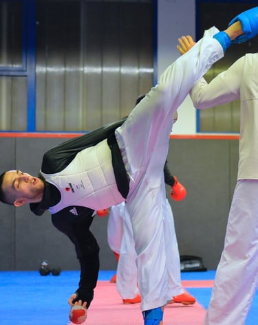Nos athlètes bénéficient d’un programme d’entraînement intensif et complet, comprenant 4 séances de karaté, axées sur le perfectionnement technique et tactique. En complément, 2 séances de préparation physique sont prévues pour renforcer la condition physique et optimiser les performances. Un programme collectif de préparation mentale est également mis en place, avec un accompagnement individualisé pour certains athlètes en fonction de leurs besoins spécifiques. De plus, nos athlètes sont suivis régulièrement par un kinésithérapeute pour assurer une récupération optimale et prévenir les blessures.