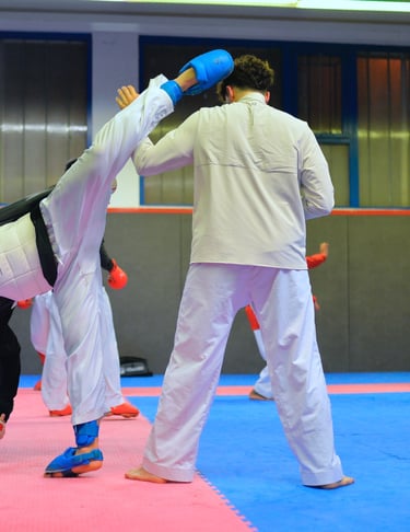 Nos athlètes bénéficient d’un programme d’entraînement intensif et complet, comprenant 4 séances de karaté, axées sur le perfectionnement technique et tactique. En complément, 2 séances de préparation physique sont prévues pour renforcer la condition physique et optimiser les performances. Un programme collectif de préparation mentale est également mis en place, avec un accompagnement individualisé pour certains athlètes en fonction de leurs besoins spécifiques. De plus, nos athlètes sont suivis régulièrement par un kinésithérapeute pour assurer une récupération optimale et prévenir les blessures.